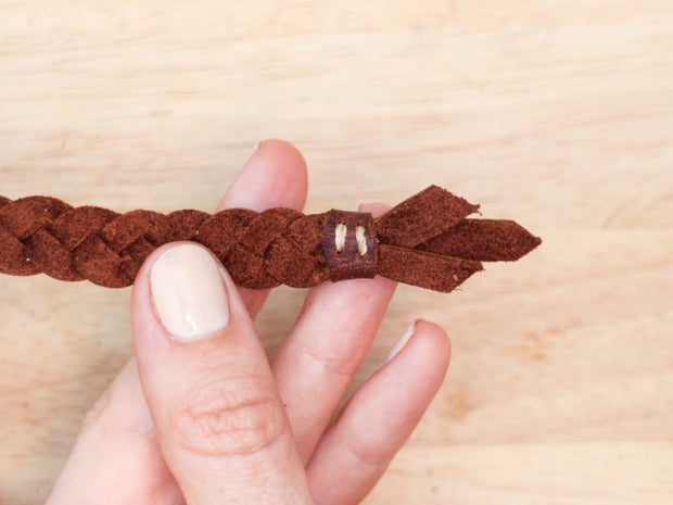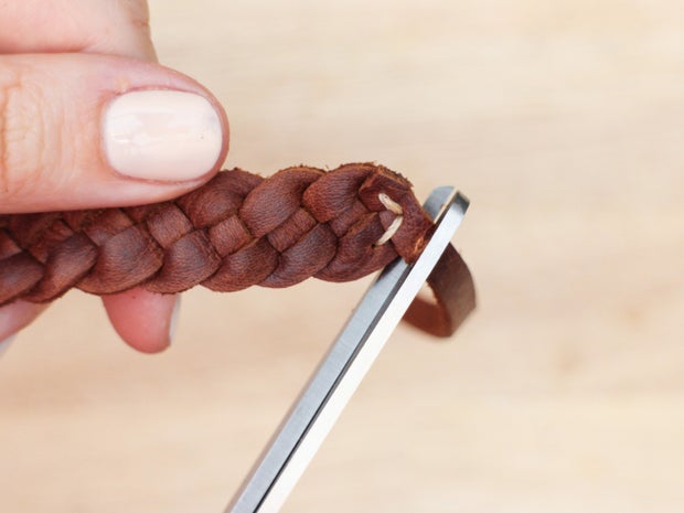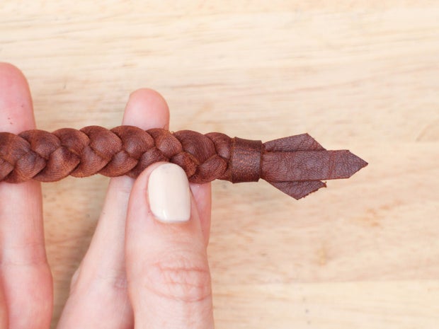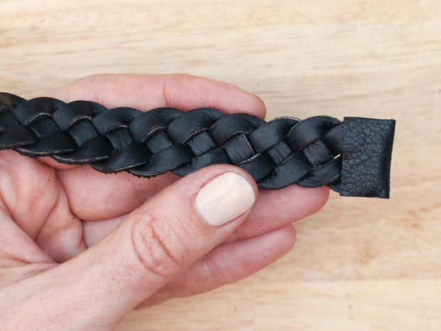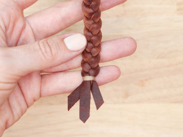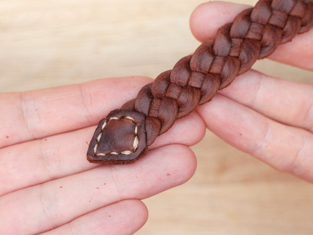 It can look a bit more professional, however, to cap the ends of the braid with a larger piece of leather. You can do this with a two piece cap if you want to create a shaped end, or one piece folded over to create a flat end.