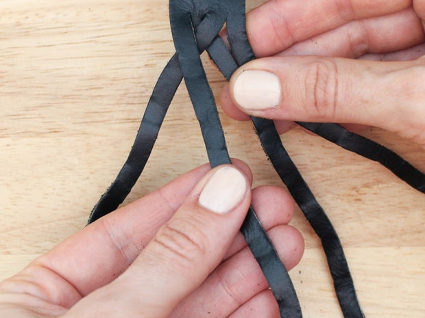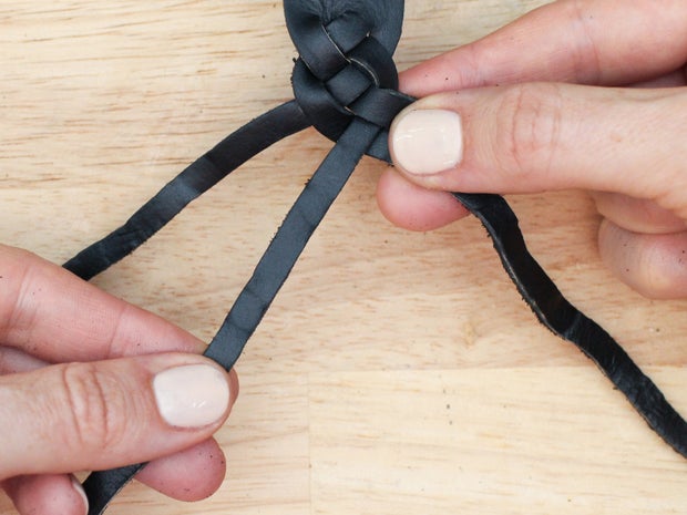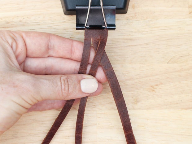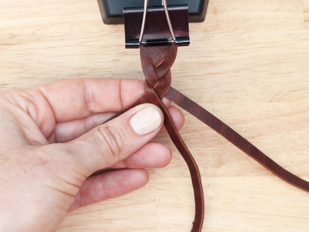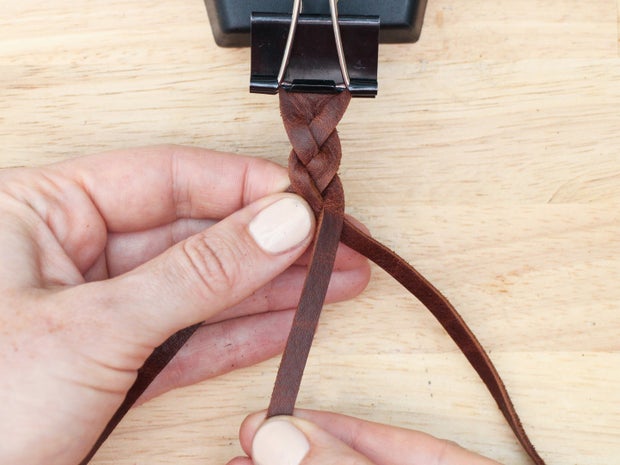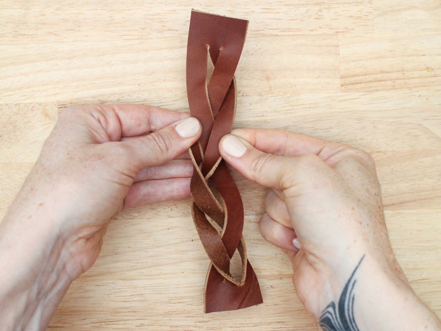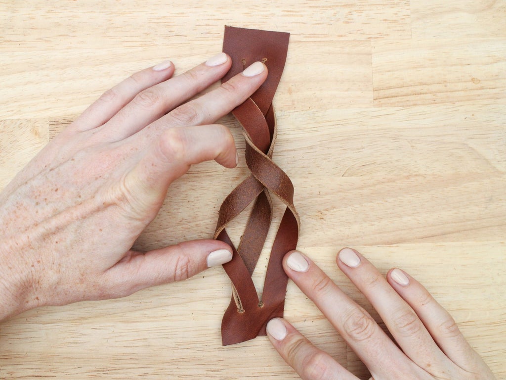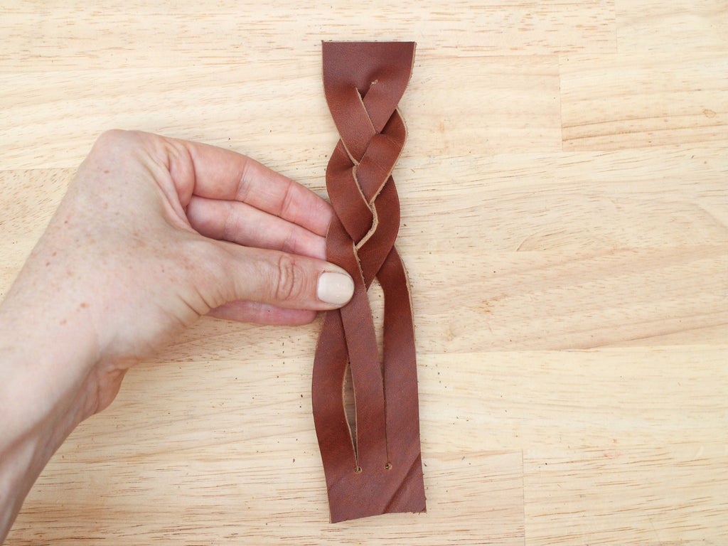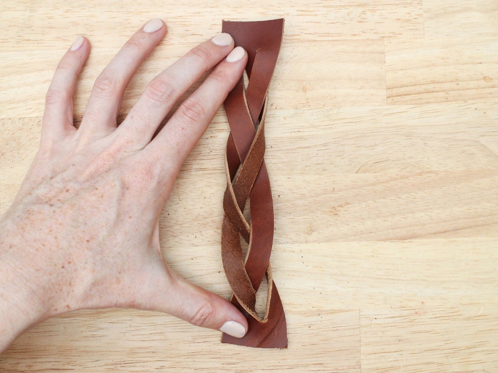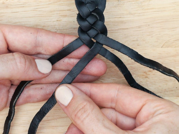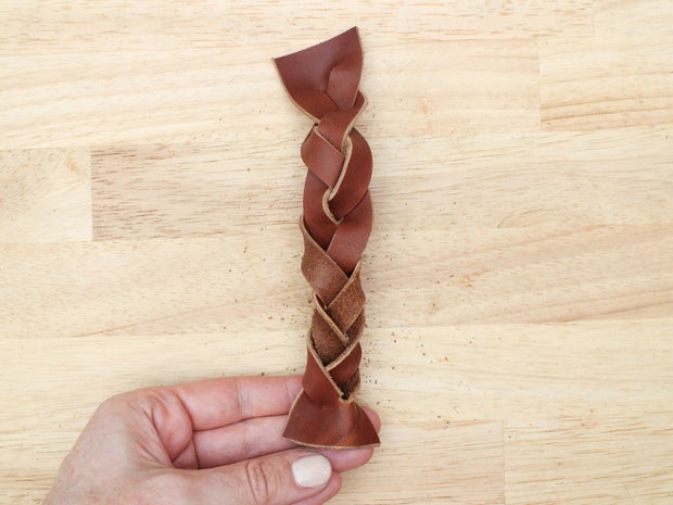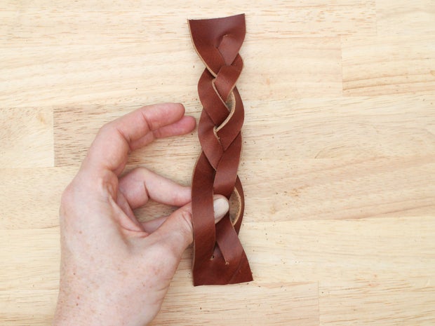 As with the 3 strand braid, keep the grain side up and the tension on your strands equal as you braid so the weave looks even.