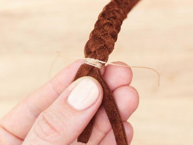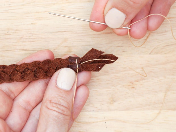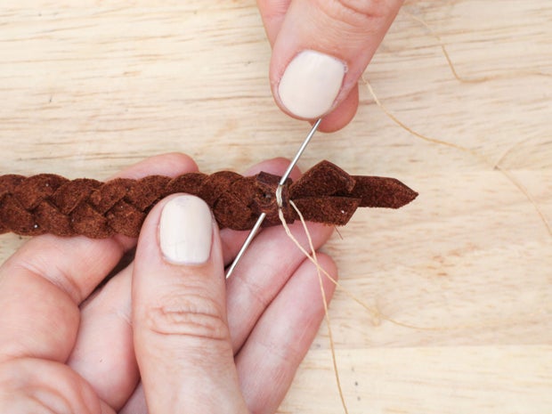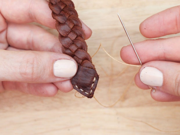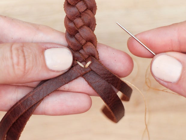 Sew the cap onto the braid with a saddle stitch.