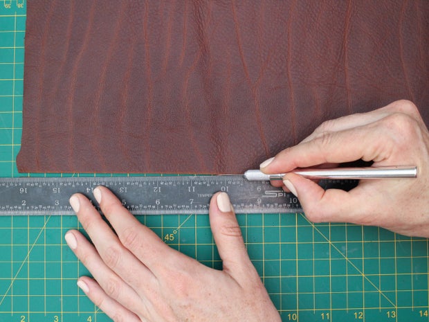To create the basic 3 strand braid this way, first decide how long and wide you need your braid to be. Braiding will take up some of the length of your leather, so you need to account for that. Braiding usually causes a length shrinkage of around 1/4 depending on the thickness of the leather and the width of your strips. So if you want a 9" long braid, you need to start by cutting strips about 12" long.